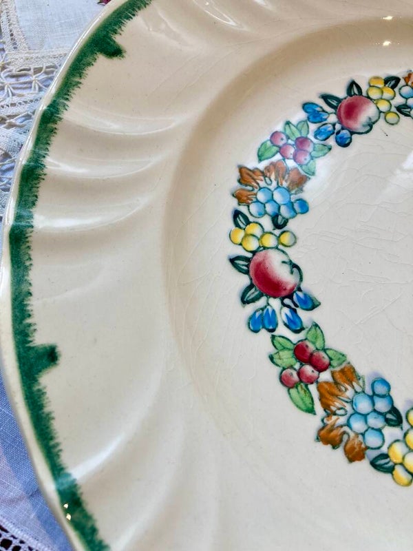 Grand plat de service de la manufacture Longwy modèle Pomone, de forme ronde et légèrement creux, il mettra en valeur vos plats réalisés avec coeur.