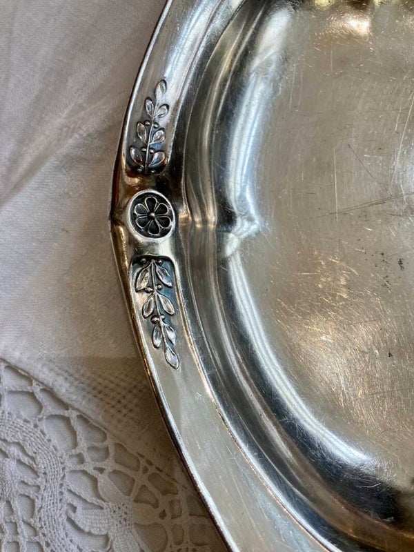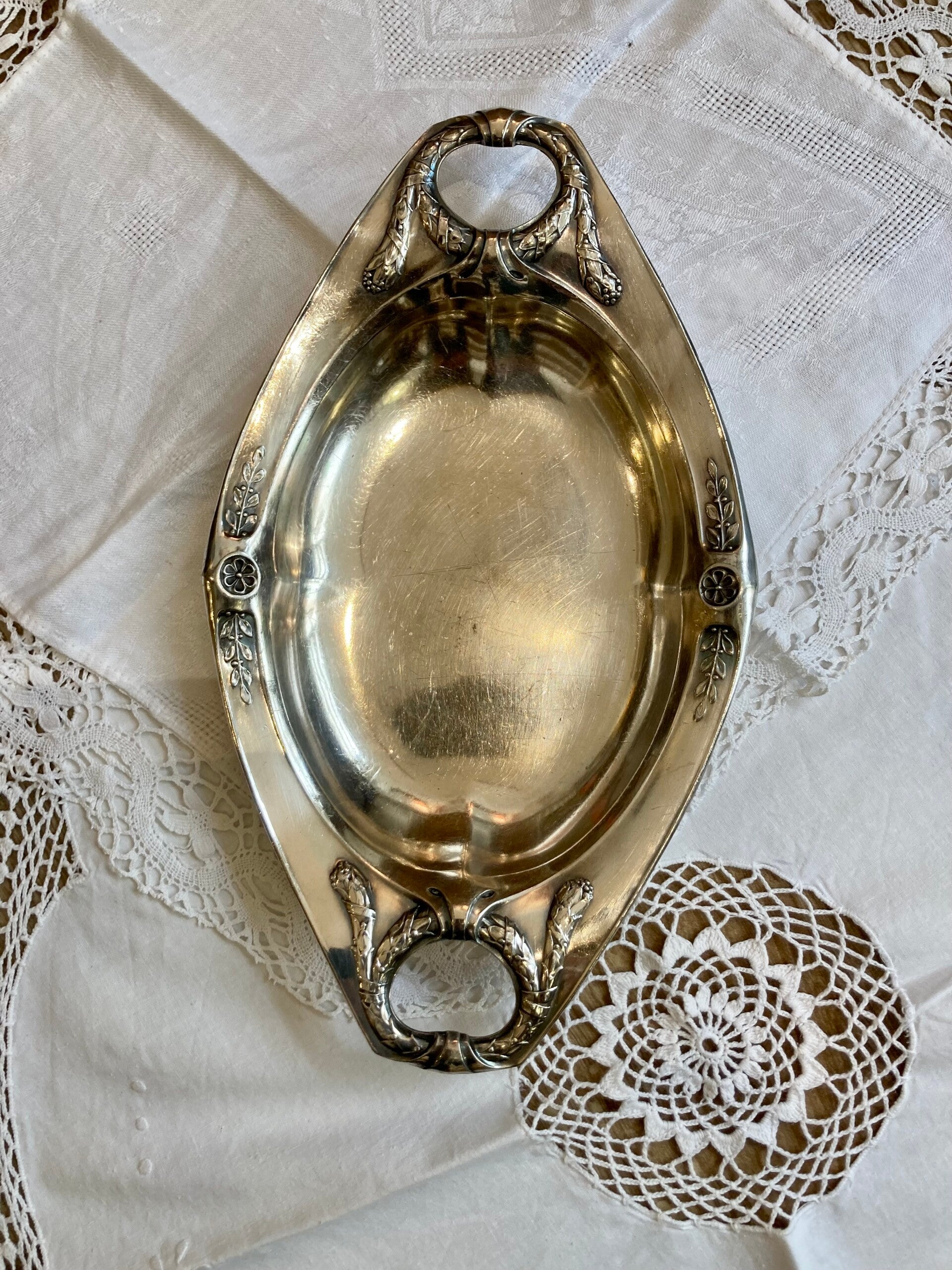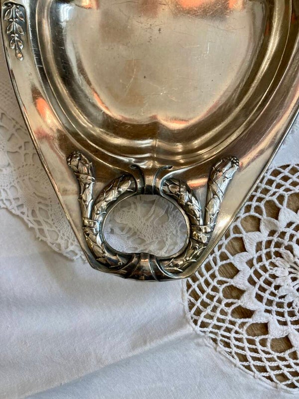 Superbe coupe en métal argenté de la période Art Nouveau, début 20ème siècle, utilisable en centre de table, en vide poche, pour un effet très chic et sophistiqué.