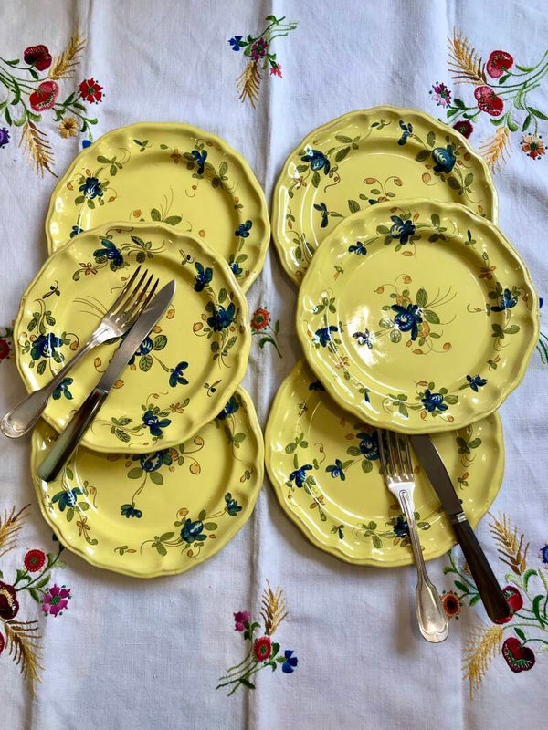 Superbe série d'assiettes en fïence Stannifères d'une couleur lumineuse pour faire une déco de table colorée et chic.