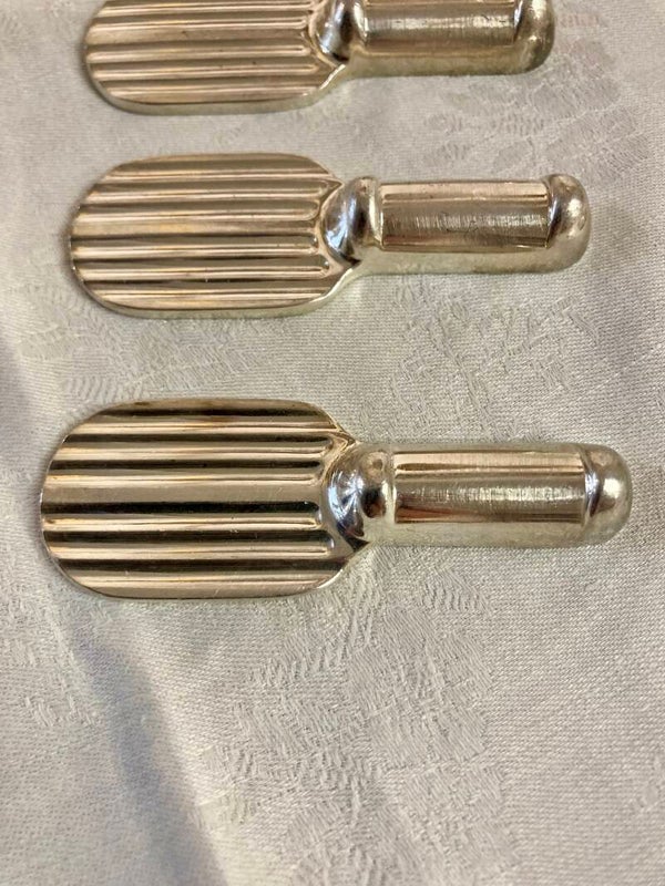 Série de 8 porte-couteaux en métal argenté, très légères marques du temps.