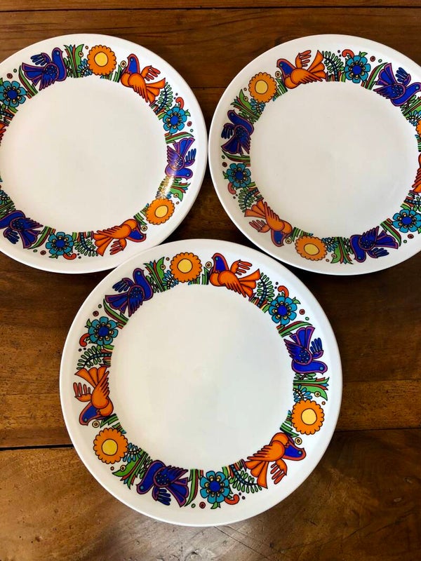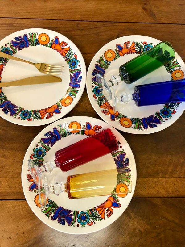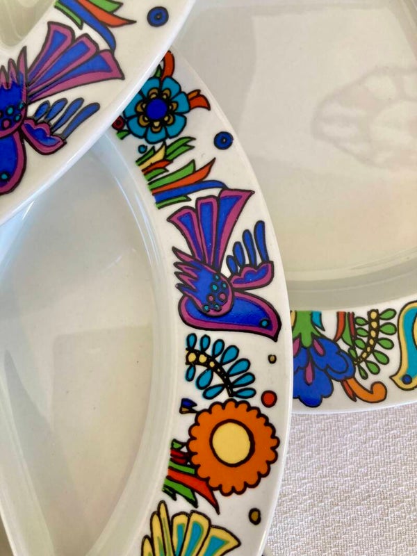Ce service Acapulco de Villeroy et Boch est iconique, et représentatif d'une époque joyeuse et colorée, les années 70. Il a été créé en 1967, et la première édition porte un tampon bleu.