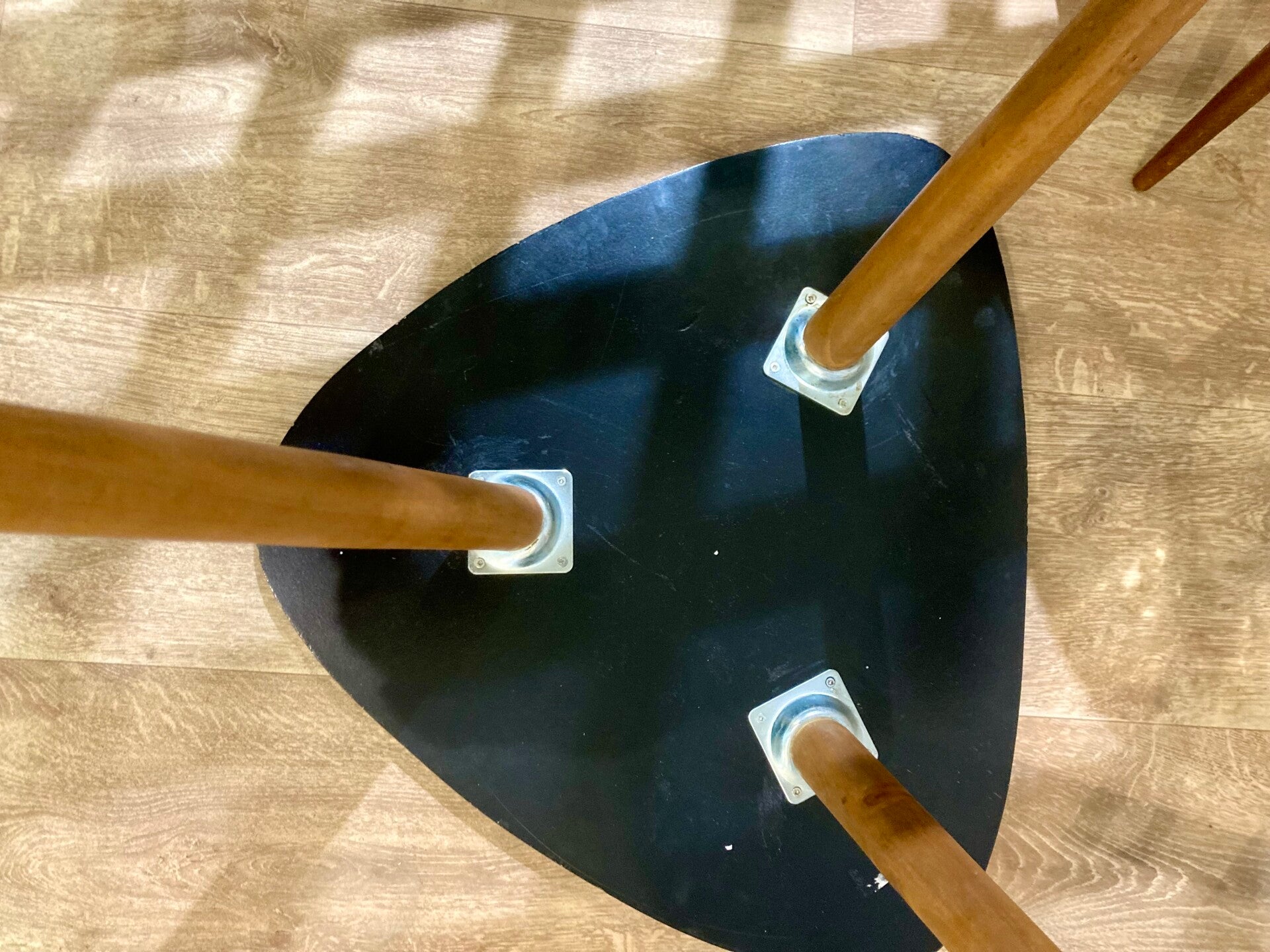 Table basse triangulaire tripode en Formica vintage