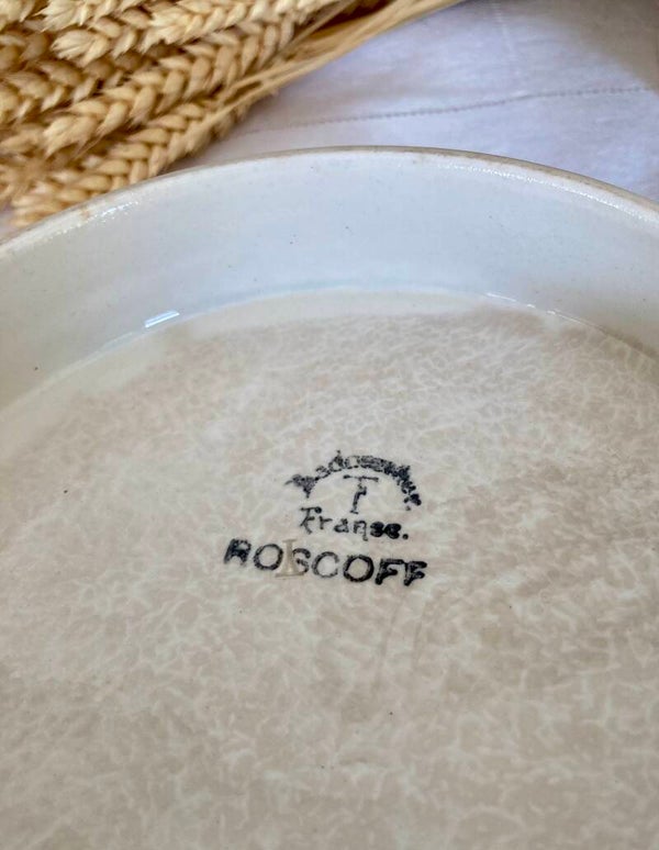Compotier original Art Déco de la manufacture Badonviller, modèle Roscoff, au décor stylisé de fleurs et vannerie moutarde et noir, typique des années 30/40.