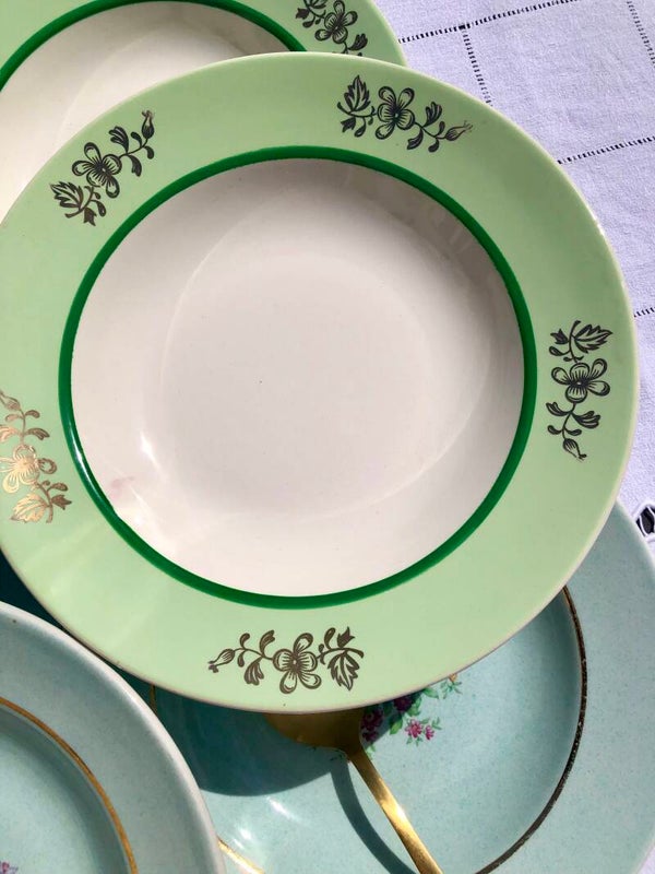 Une charmante façon de créer votre table dépareillée campagne chic avec de la couleur et de belles manufactures.