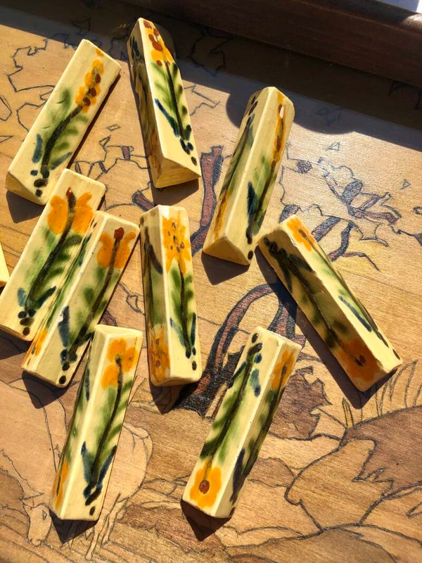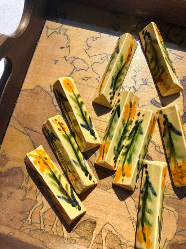 Voilà de la couleur pour une jolie table rustique, campagne chic, une très belle série de 12 portes-couteaux.