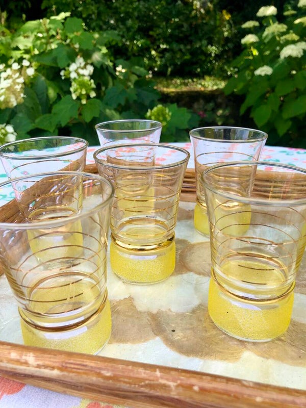 6 verres dorés et granités hauteur 9 cm, diamètre au buvant 6.5 cm.