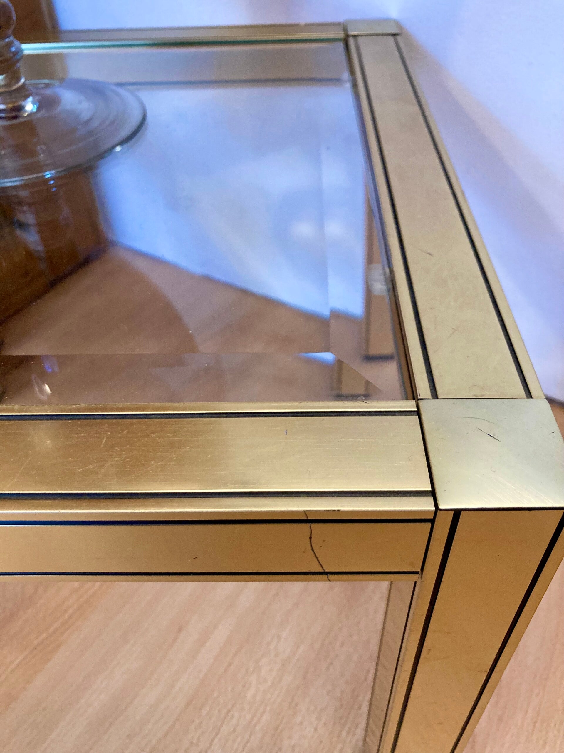 Table bout de canapé dorée et verre biseauté style Hollywood régency